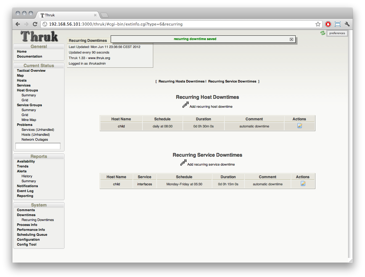 Thats where recurring downtimes will become handy and latest Thruk Version includes this new feature.