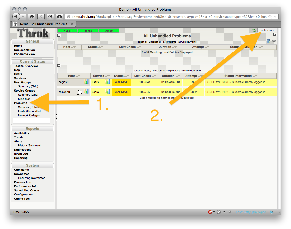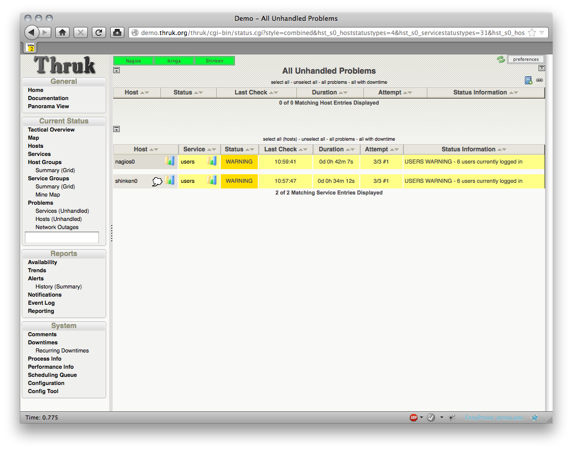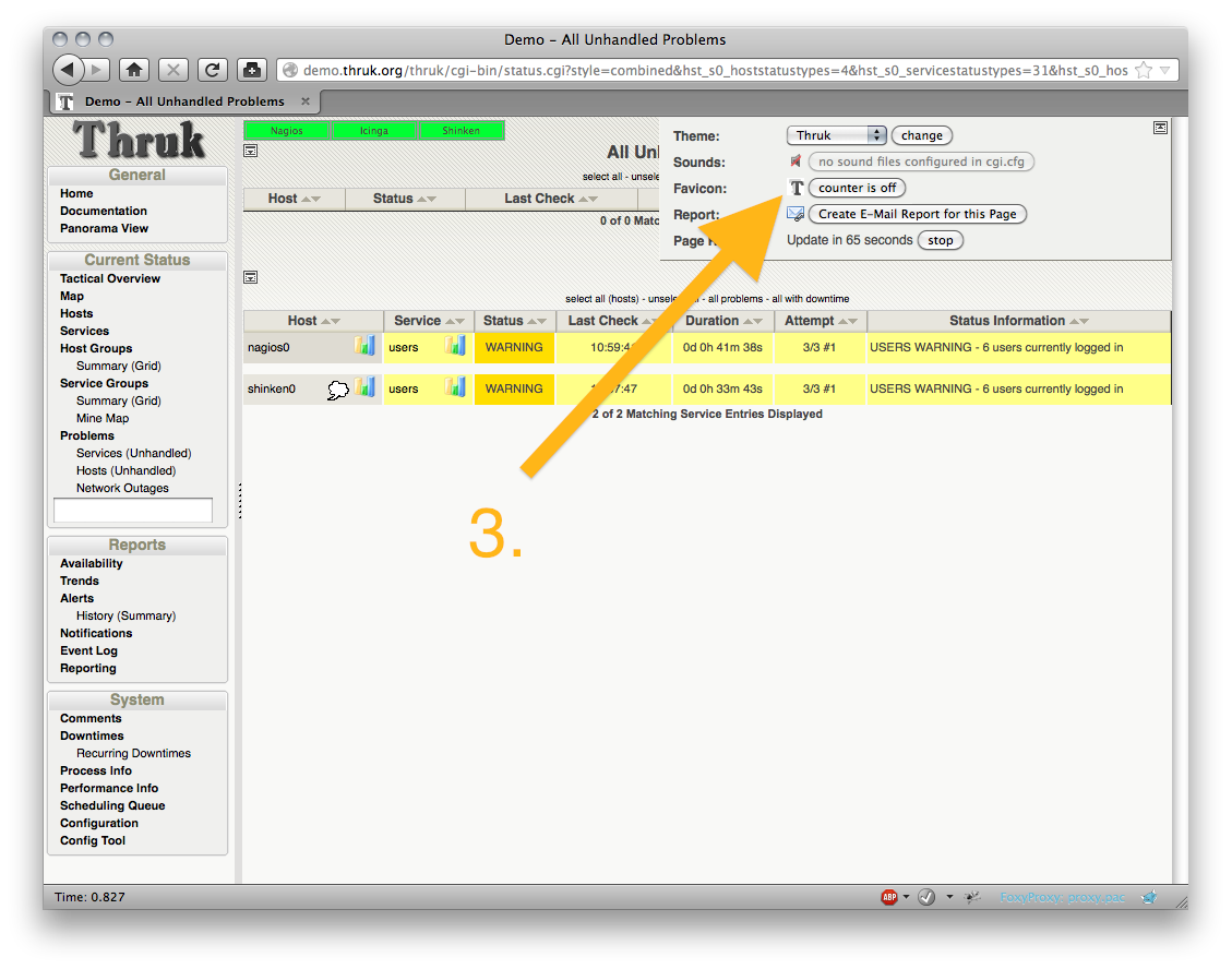 Since Version 1.46 of Thruk the number of problems can be dynamically viewed in Thruks favicon. This is quite handy for creating a pinned app tab in Firefox.