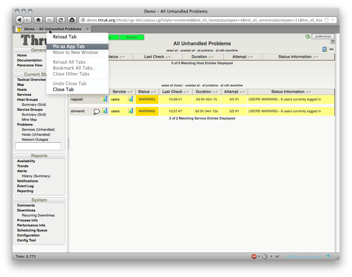 Et voilá, you now have a Thruk App Tab in your Firefox.
