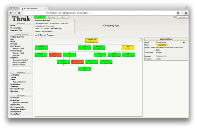 Business Prozesse in Nagios zu modellieren gehört zu den beinahe täglich anstehenden Aufgaben beim Thema Monitoring. Die neueste Thruk Version (v1.78) bringt nun ein Business Prozess Addon mit dem sich Prozesse einfach per Gui modellieren lassen.