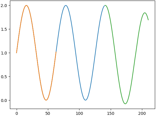 Abstrakt wird dies im folgendem Bild dargestellt. Orange und blau sind die bekannten Daten, wobei orange die erkannte Saison ist. Grün sind die vorhergesagten Werte.