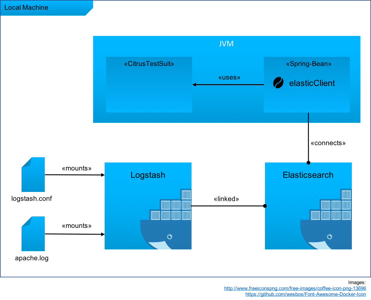 To keep it simple we’ll just focus on the setup. Therefore we neither create complex tests nor a too large szenario. Our szenario is basically to ship some apache log events to a Elasticsearch instance and verify it with Citrus.