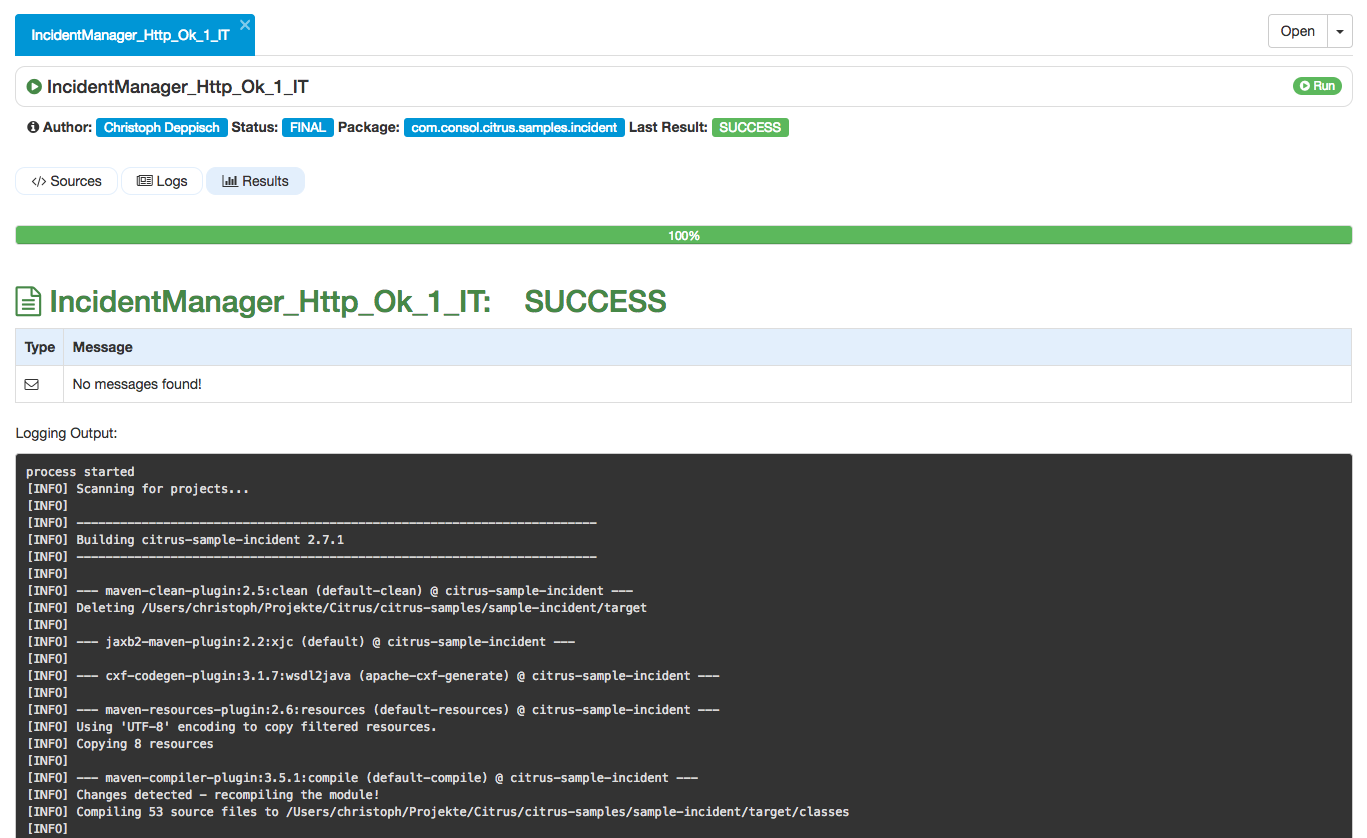 Now it is your turn! Open your Citrus project with that web UI and tell us how you like it! There are many different approaches to using Citrus in a development project. We tried to cover all aspects and we are sure that the web UI is able to read most of the Citrus project out there. In case there is a time when the web UI is not able to read your project for some reason please tell us. When there is something wrong or simply not working out for you just open an issue on github.