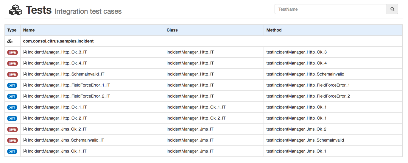 You can see all available Citrus test cases in the opened project. The list of tests contains XML and Java DSL tests.