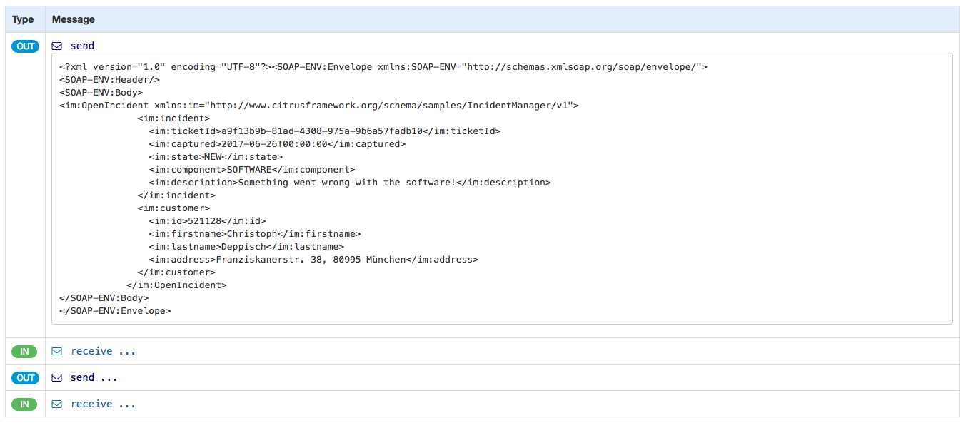 If you execute the test you will see the log output of that process and you will get a detailed access to all messages exchanged in that test run.