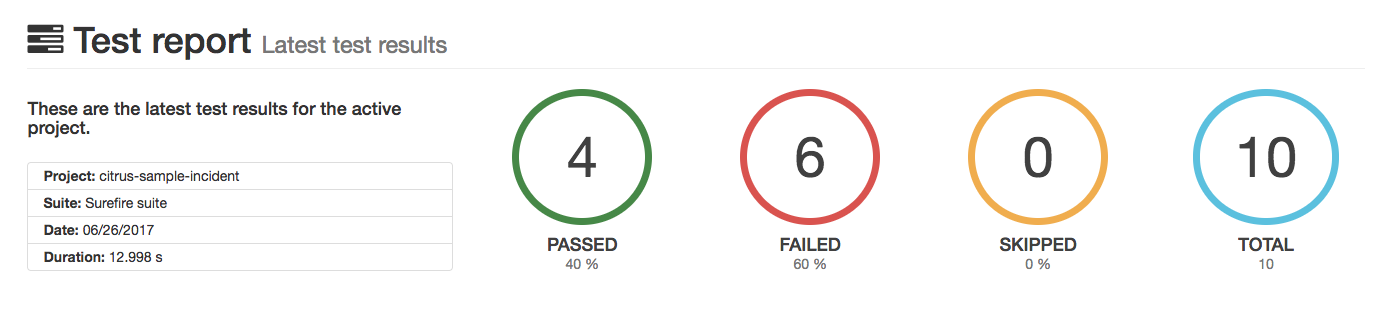 The administration UI is able to read the test results in your project. Typically these are JUnit or TestNG reports that are generated from each test run. If present the UI will read and display detailed test results of the latest test run.