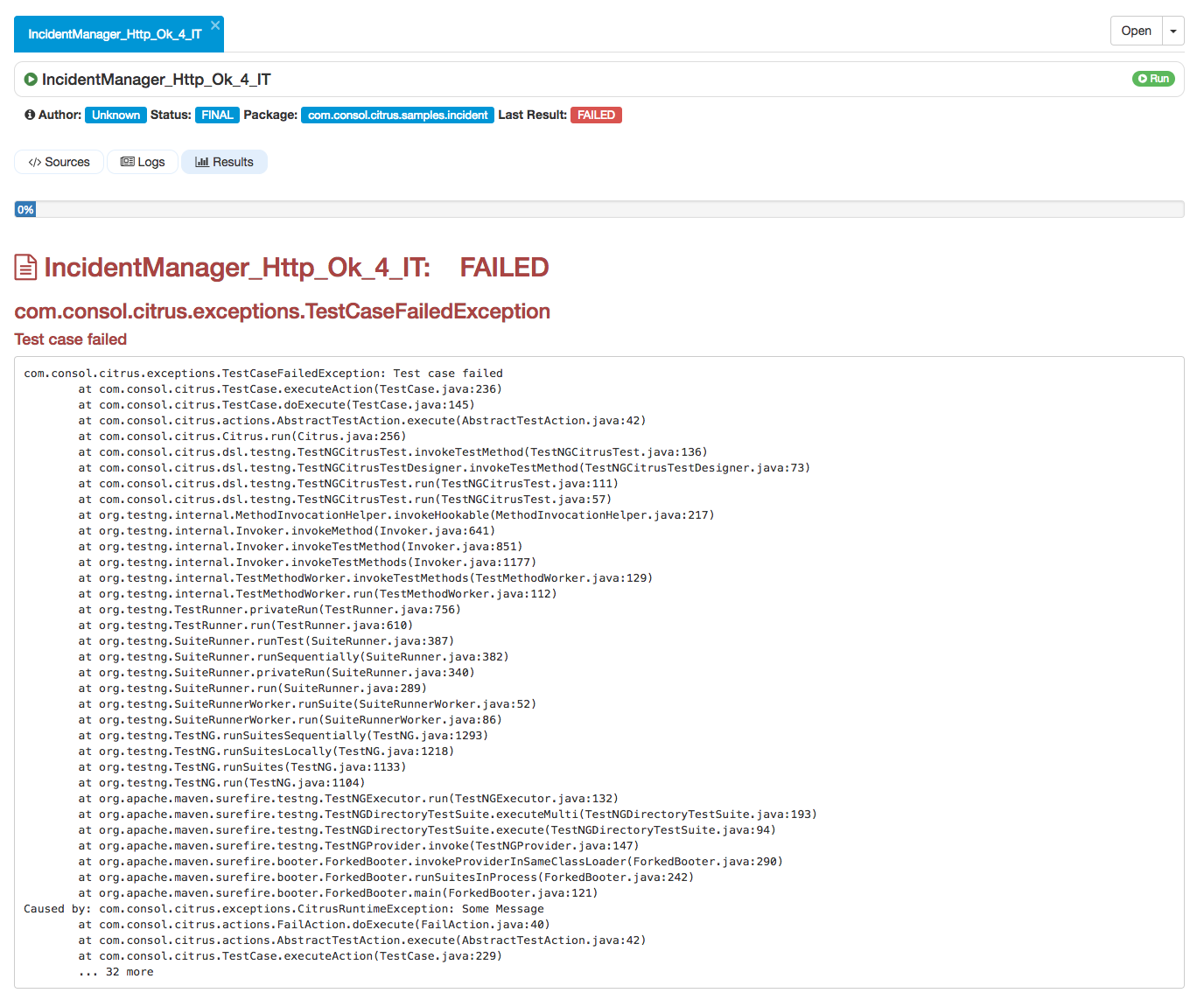 Also the UI is helpful when executing the Citrus integration tests in different stages (test, acceptance, explorative) of your release process. There is not always a full capable development environment available for executing integration tests. You can run the Citrus administrative UI as Docker container or Kubernetes pod in order to make the tests portable to your containerized test environment.