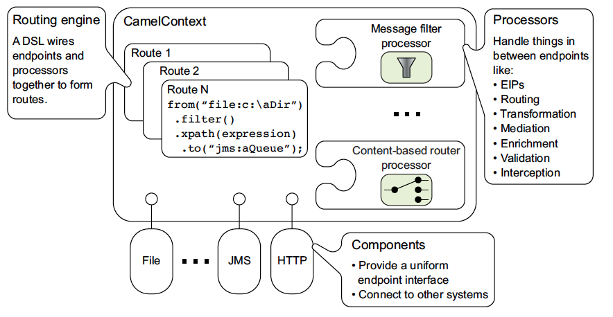 The main component of Camel is the Camel Context. It holds up all the features which Camel has to offer e.g.