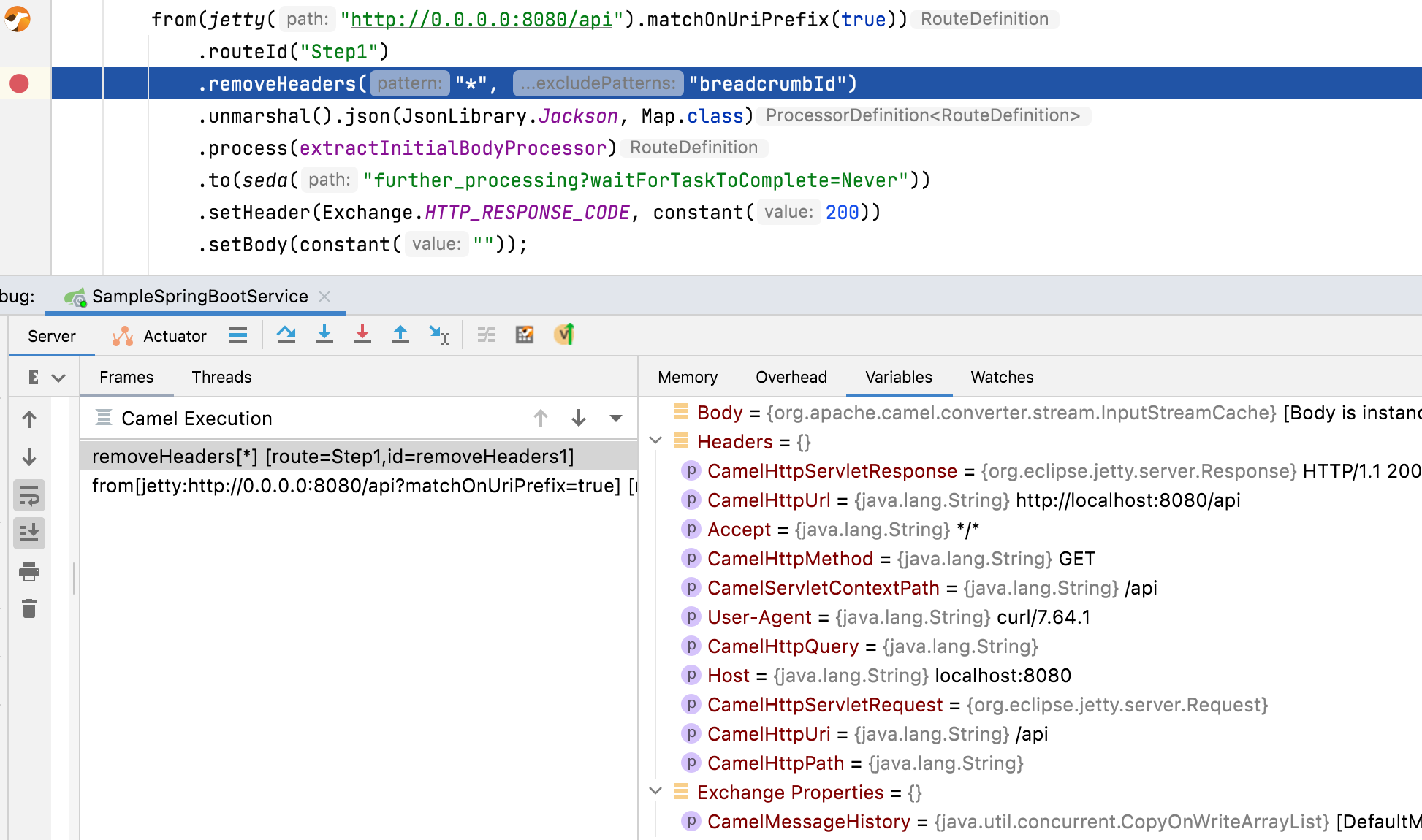 Finally, from my point of view the new debugging features of Apache Camel itself allows newcomers to easily get started with debugging and prevent experienced users from adding inline processors{:target="_blank"} only for debugging purposes.